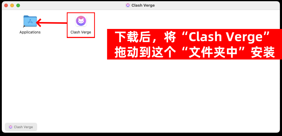 下载完毕后,将Clash Verge,拖入“Applications”文件夹中安装!