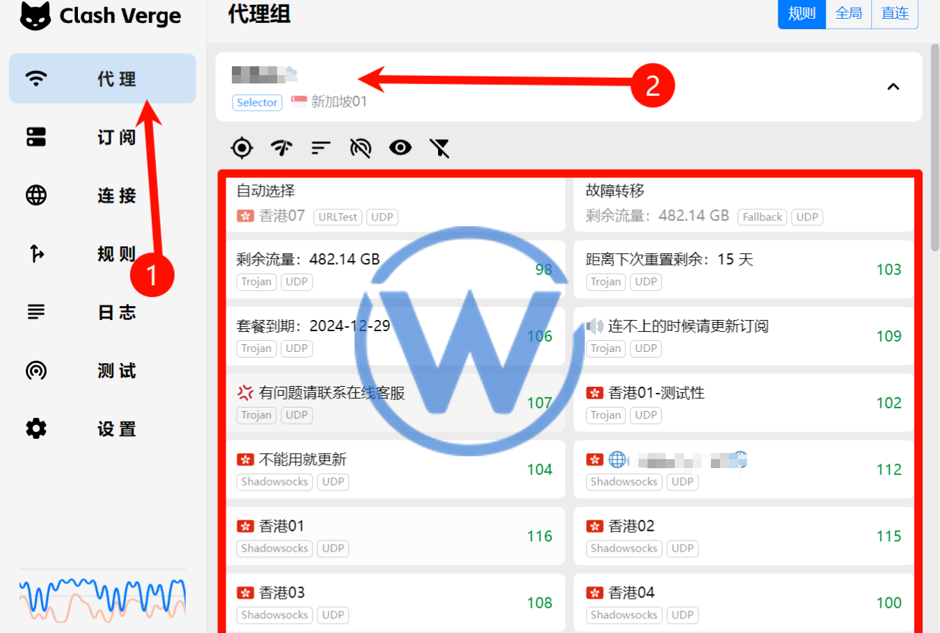 订阅添加后,我们选择下载的订阅(如果你是第一次下载会自动选择下载的订阅)
