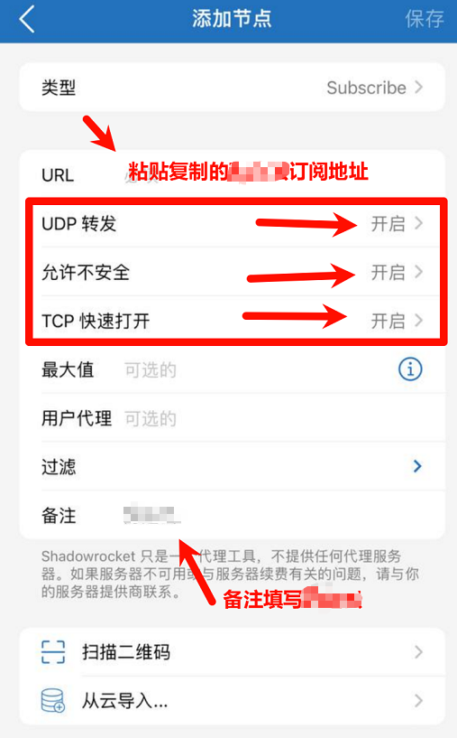 URL那里粘贴你拷贝的订阅链接,备注写:随便写,然后点“完成”就自动返回APP主界面了