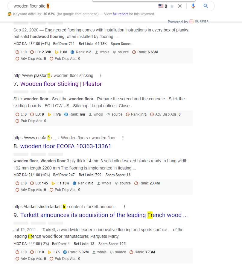 site来定位开发的目标国家,site:fr来限定法国的独立站,域名包含.fr(其他的国家也是一样,英文的缩写)