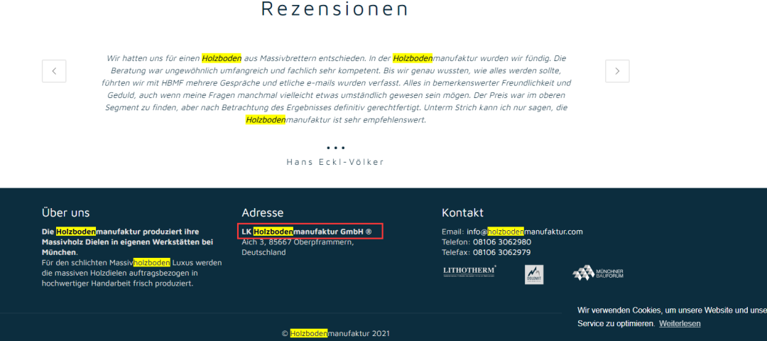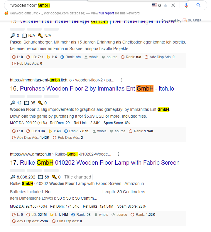 这样就搜索到了德国做地板的潜在客户,其他的国家就把产品关键词切换成对应的语种,再加上对应国家的公司后缀,以及邮箱后缀。