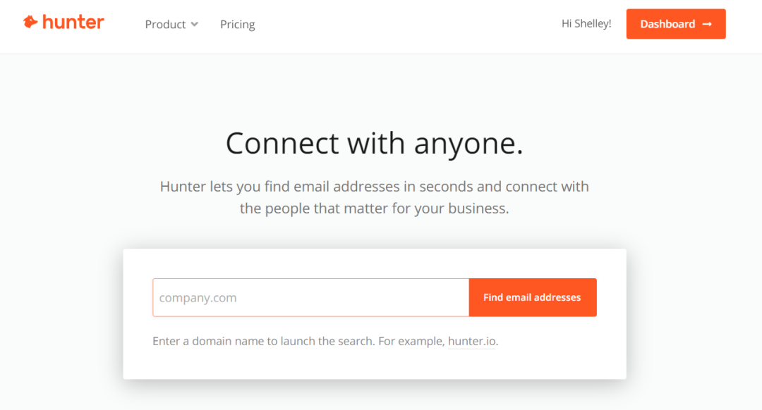 Hunter.io有Google插件,也可以登陆网址https://hunter.io/使用。需要注册一个账号,若安装插件,则可以进入目标网站,点击插件查看相关邮箱列表。免费版本每月只能查找100次。
