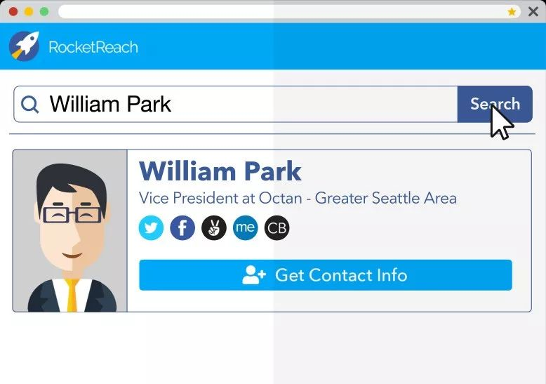 RocketReach是Google插件,大家直接去Google extension搜索rocket reach进行下载download和安装install,就可以在Google浏览器上运行使用了,非常方便快捷。安装之后呢,在Google搜索框搜索页面,然后点击RocketReach就可以get页面相关的Email邮箱了。